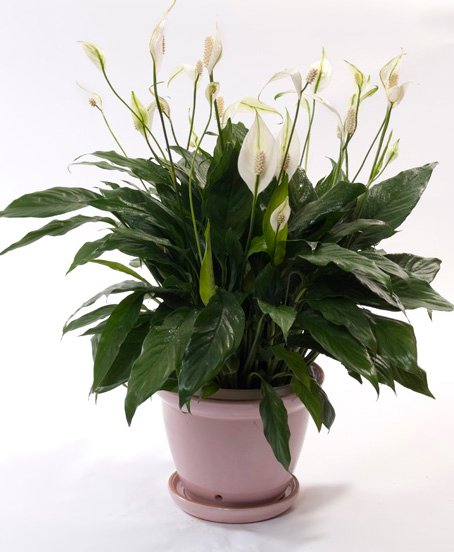 This potted plant features beautiful Peave Lilies in a ceramic container
